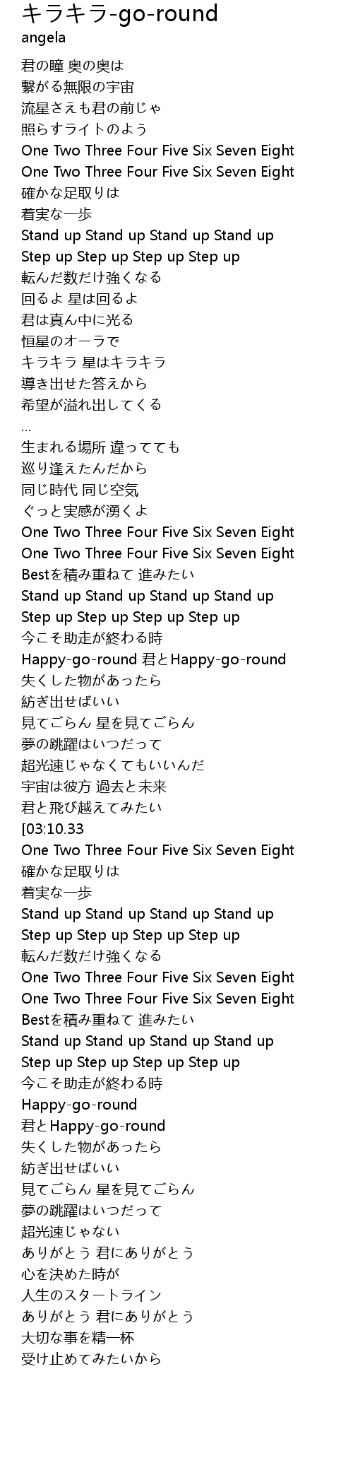| [03:00.47][03:10.33] | One Two Three Four Five Six Seven Eight |