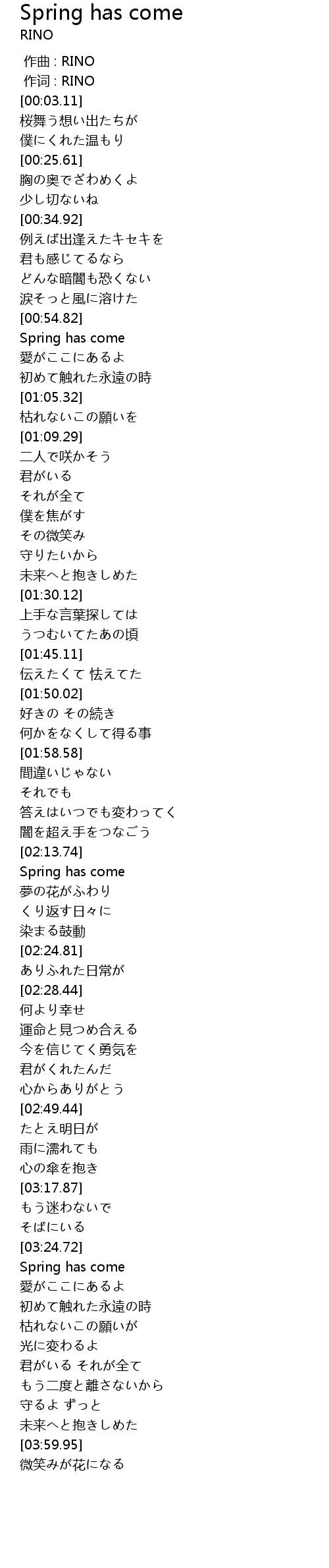 作词 : RINO |
