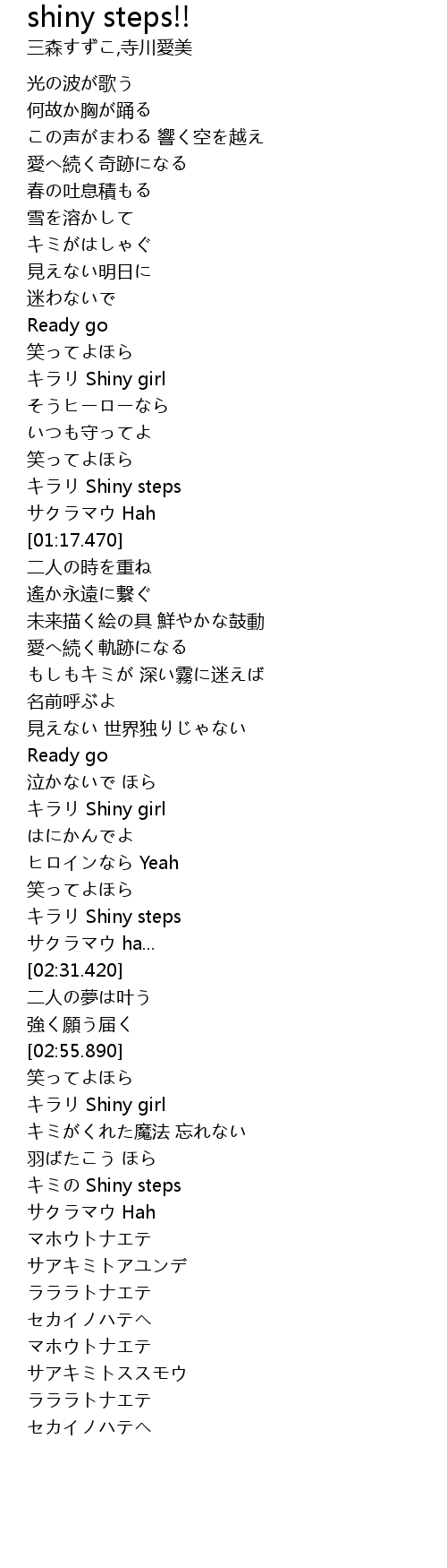| [03:04.270] | キミがくれた魔法 忘れない |