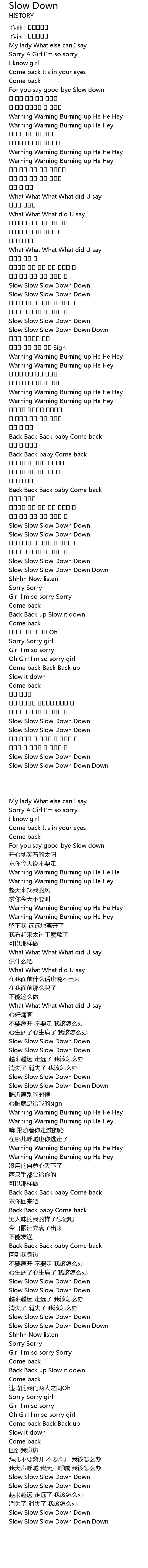 | [01:31.810] | Slow Slow Slow Down Down Down |