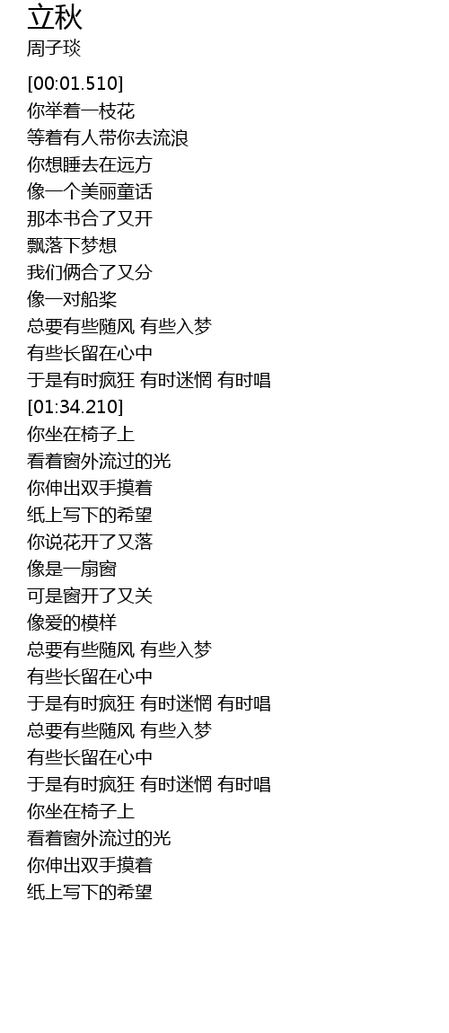 | [01:10.490] | zǒng yào yǒu xiē suí fēng yǒu xiē rù mèng |
