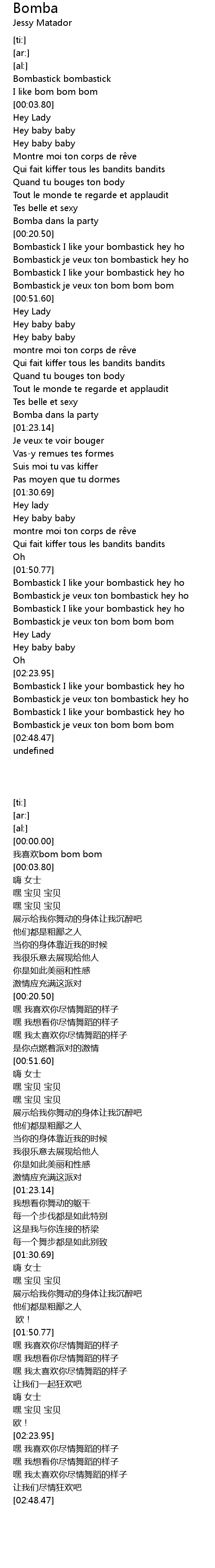 | [02:03.51] | Bombastick je veux ton bombastick hey ho |
