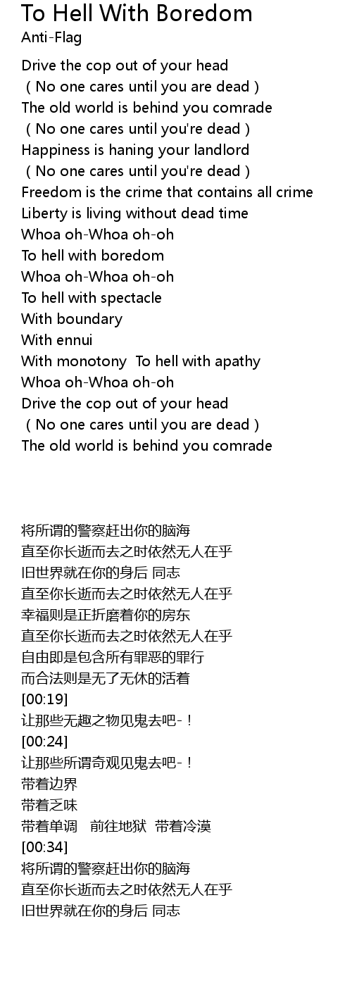 | [00:31] | 带着单调 前往地狱 带着冷漠 |