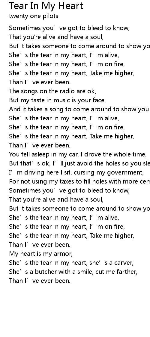 | 歌曲 | Tear In My Heart |