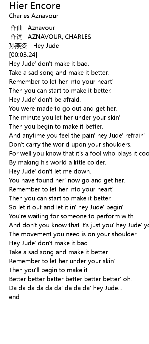 | [02:45.24] | Hey Jude' don't make it bad. |