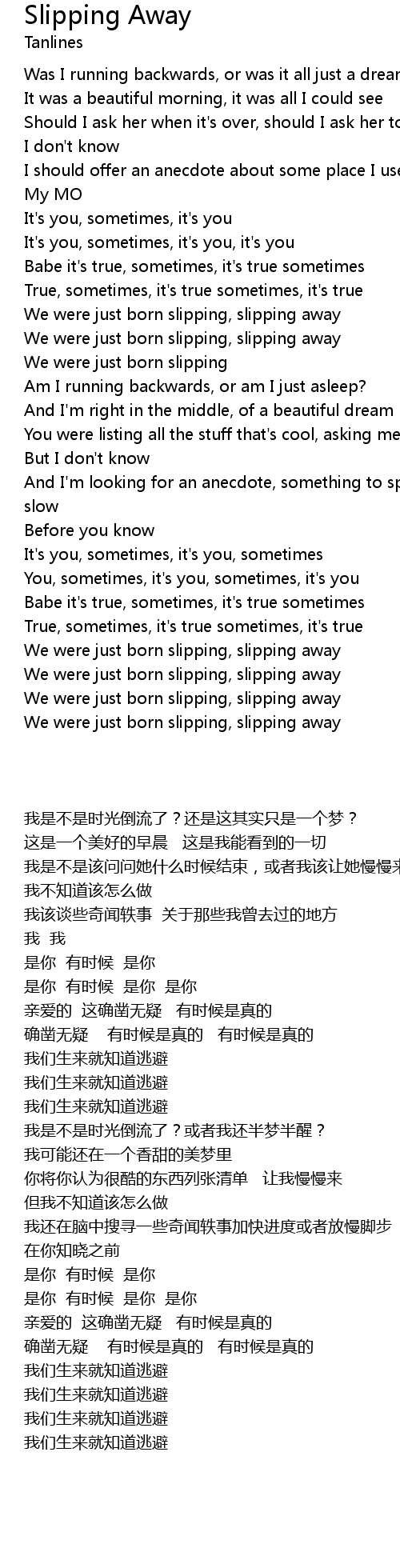 We were just born slipping, slipping away |