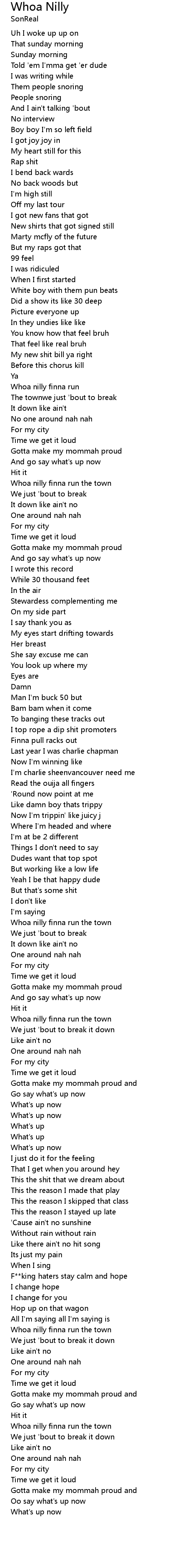 Whoa nilly finna run the town |