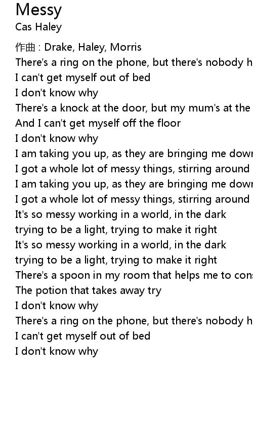 | I got a whole lot of messy things, stirring around | |
