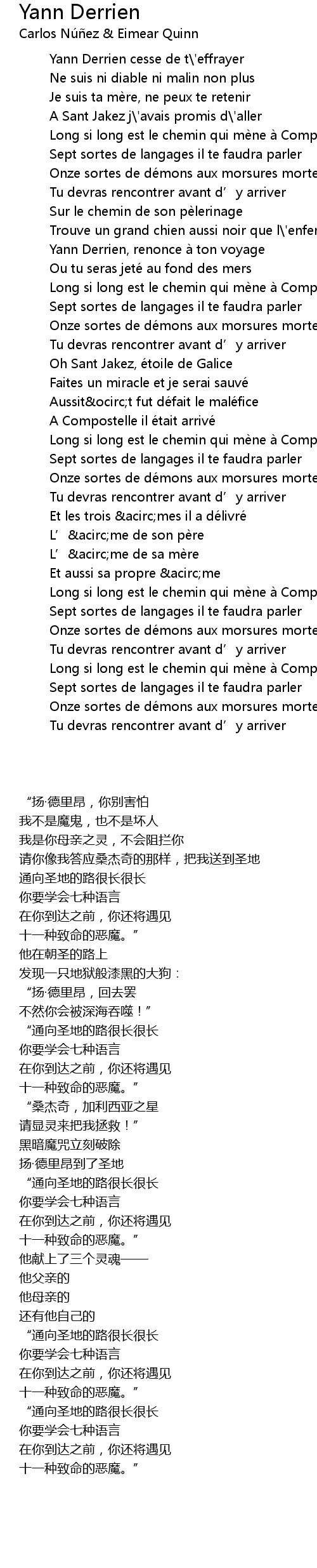 | [03:11.67] | Long si long est le chemin qui me ne a Compostelle |