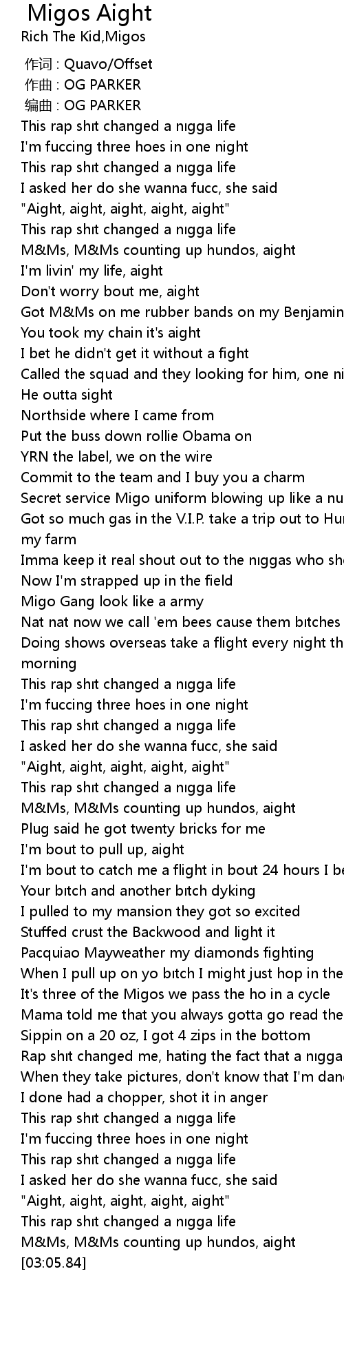 | 歌曲 | Migos Aight |
