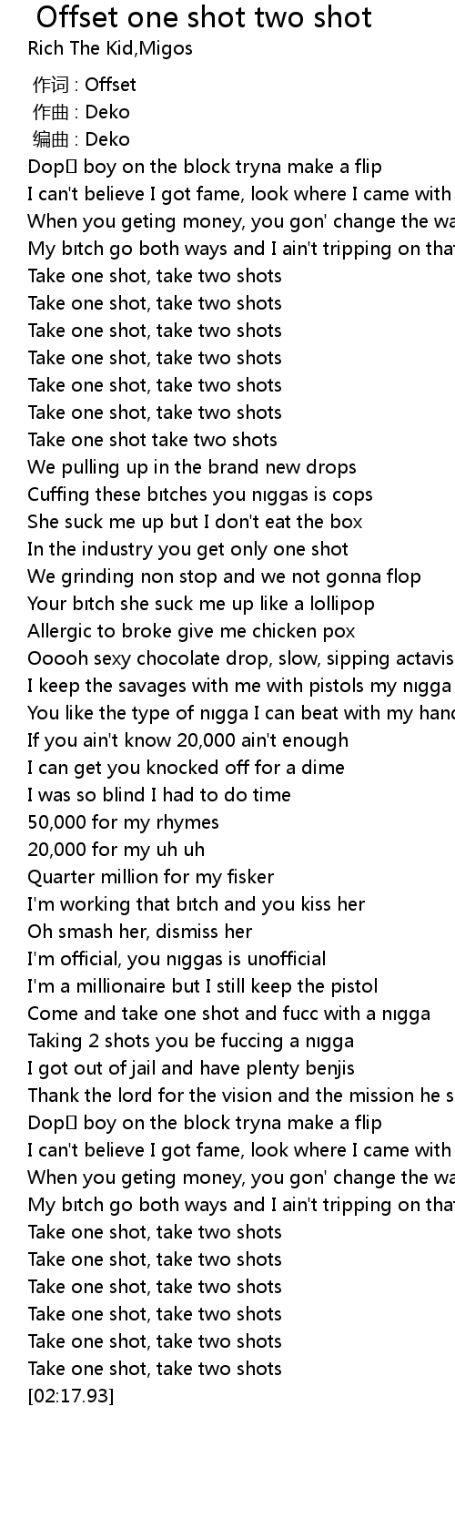 | 歌曲 | Offset one shot two shot |
