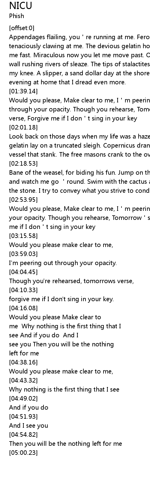 | [00:59.33] | me fast. Miraculous now you let me move past. Over the |