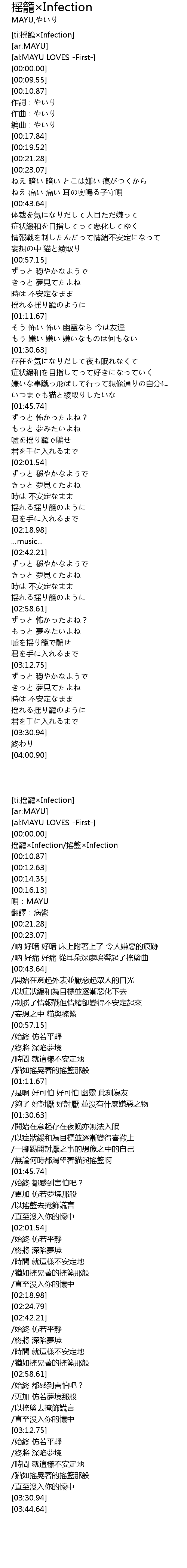 | [ti:揺籠×Infection] | |