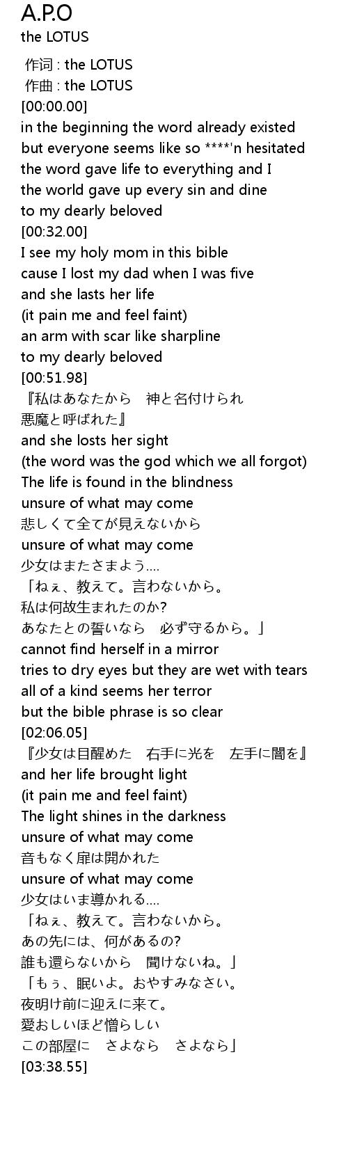 | [00:00.000] | zuò qǔ : the LOTUS |