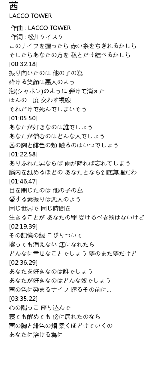 | [00:00.00] | 作曲 : LACCO TOWER |