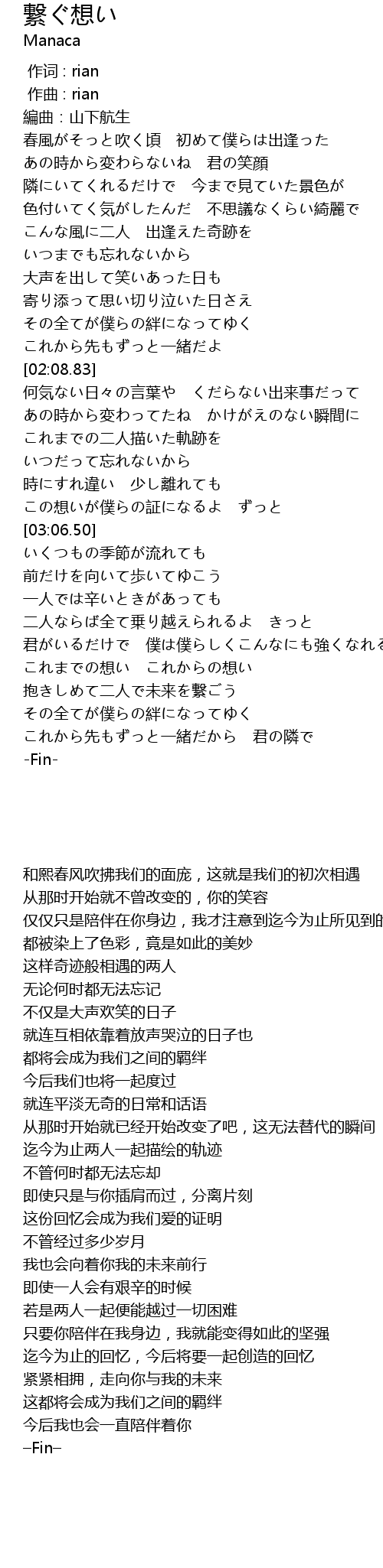 | [02:38.53] | 迄今为止两人一起描绘的轨迹 |