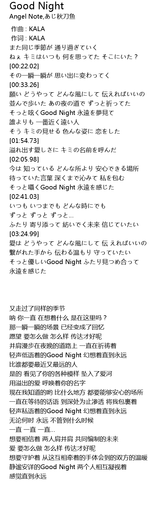 | [03:50.46] | そっと優しいGood Night ふたり見つめ合って |