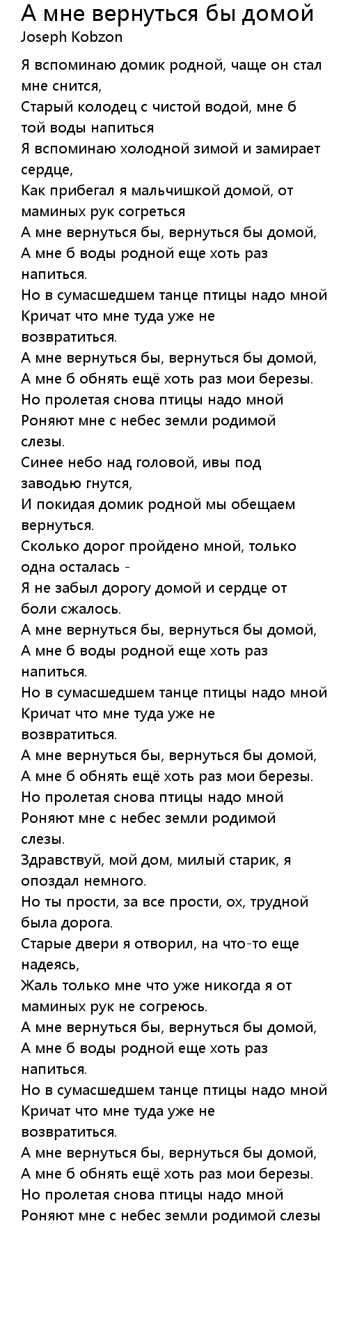 А мне вернуться бы, вернуться бы домой, |