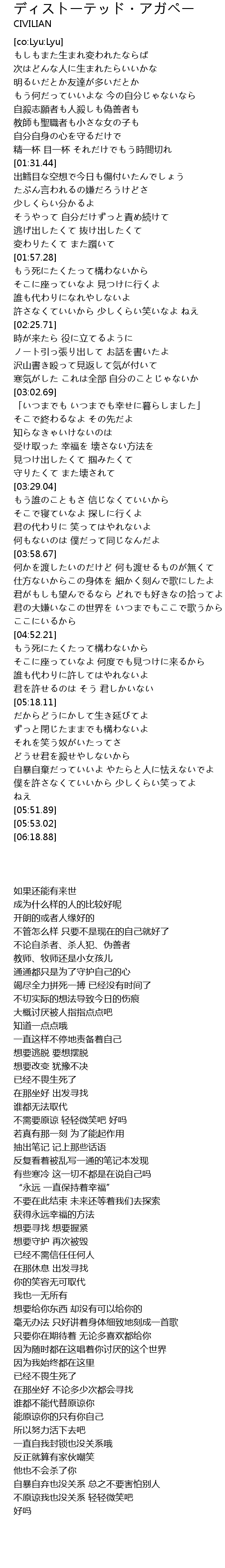 | [01:06.19] | 自殺志願者も人殺しも偽善者も |