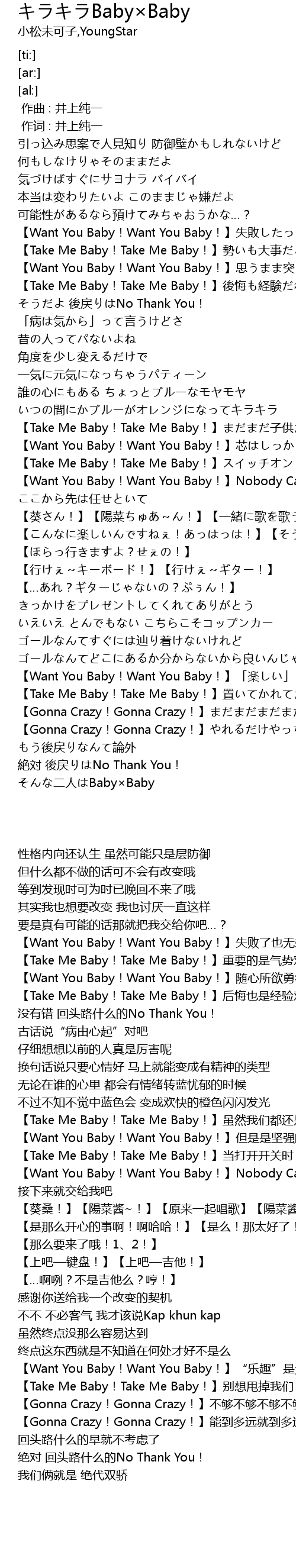 | [00:42.54] | 【Want You Baby!Want You Baby!】失败了也无妨啦 |