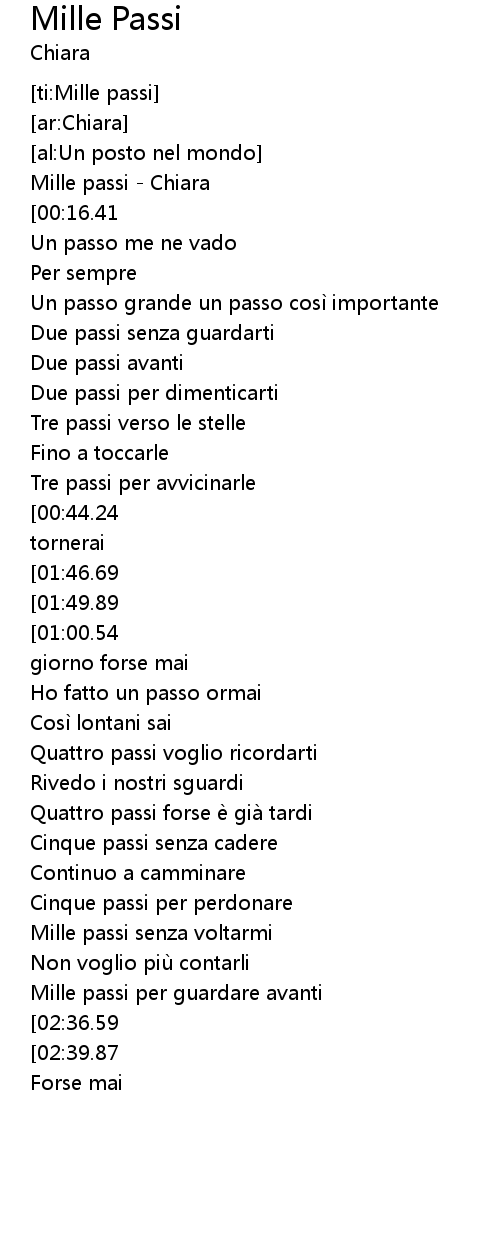 | [01:58.62][02:36.59] | Un passo via da noi |