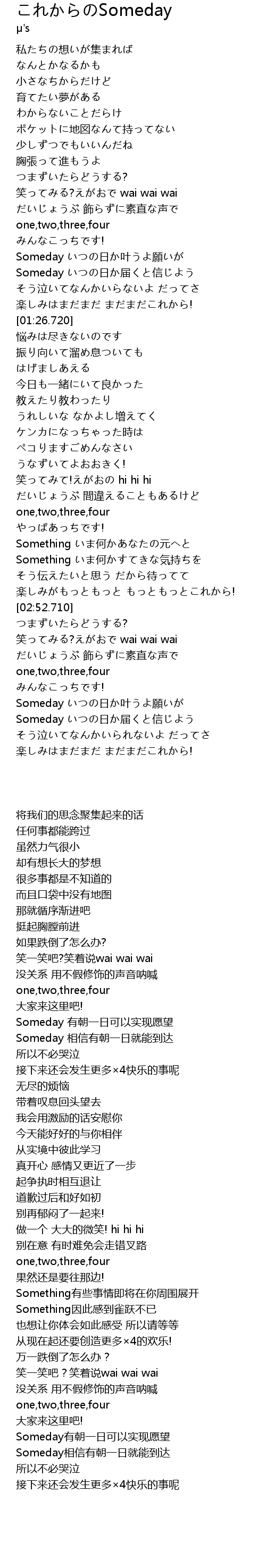 | [00:59.840] | Someday いつの日か叶うよ願いが |