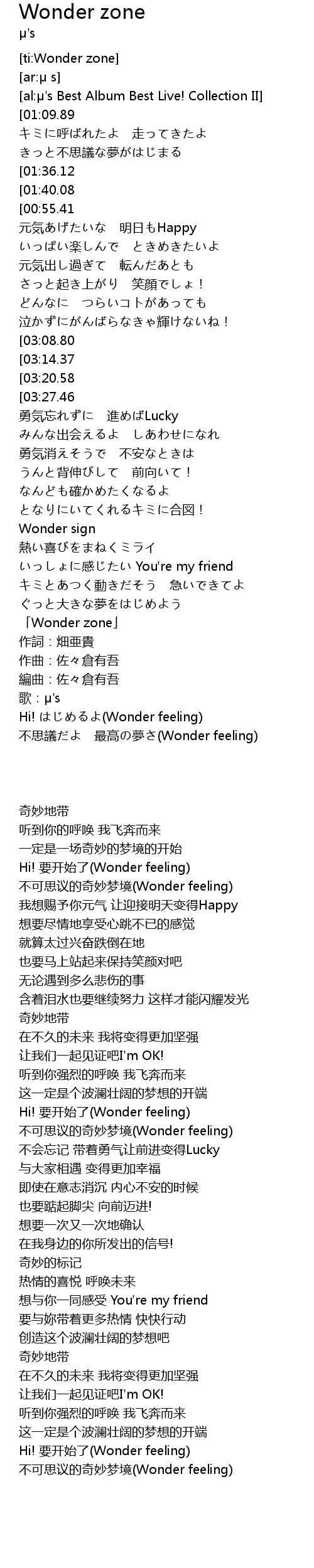 | [00:00.00][01:09.89][03:07.45] | Wonder zone |