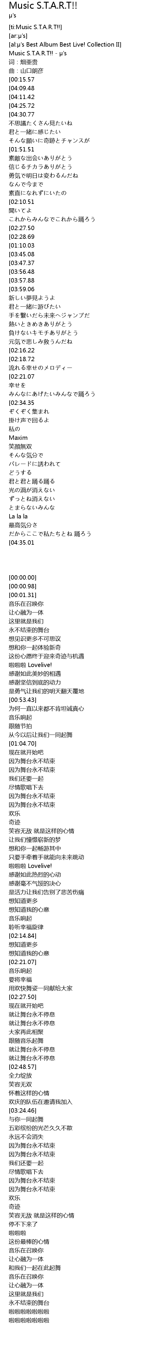 | [00:00.00] | Music S. T. A. R. T!! ' s |