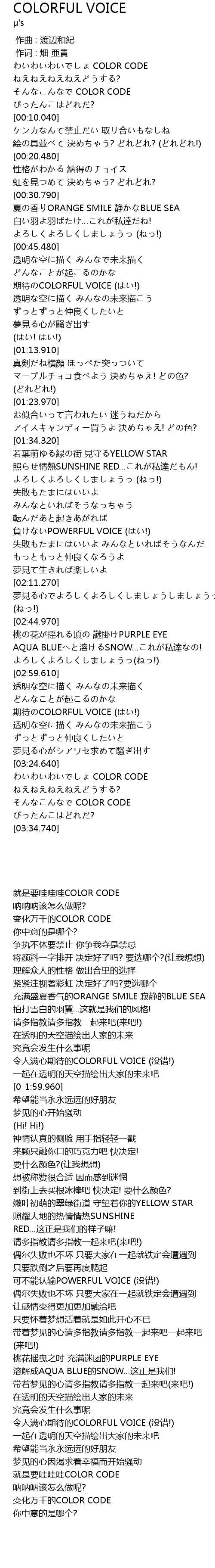| [00:53.460] | 期待のCOLORFUL VOICE (はい!) |