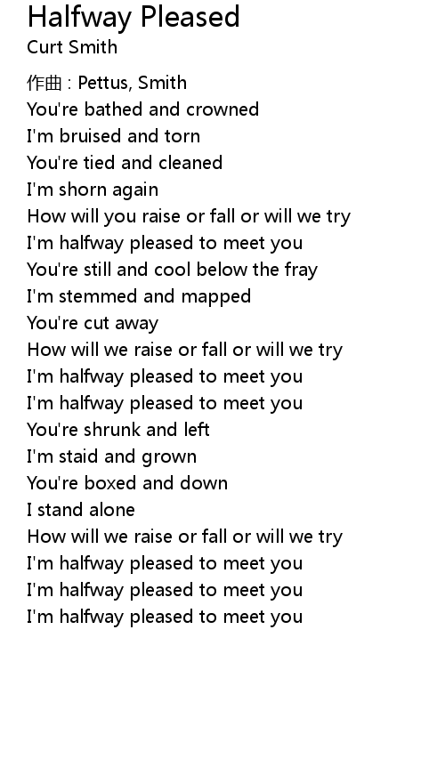 | 歌曲 | Halfway Pleased |