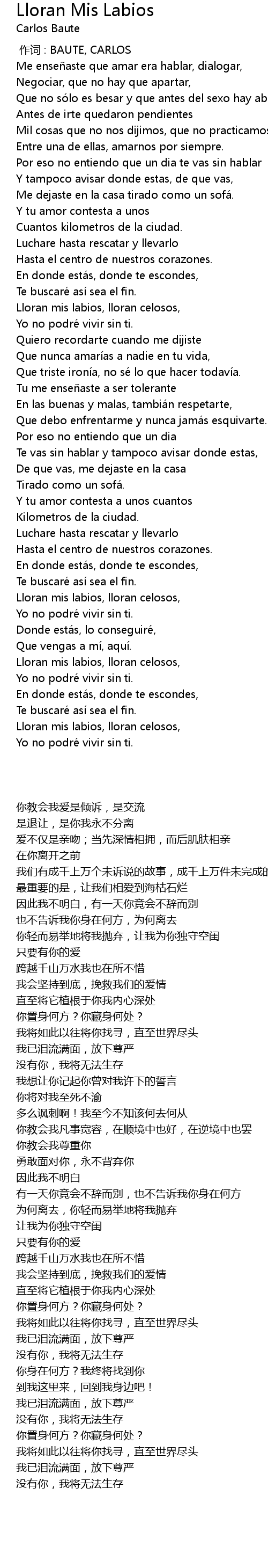 | [00:00.00] | zuò cí : BAUTE, CARLOS |