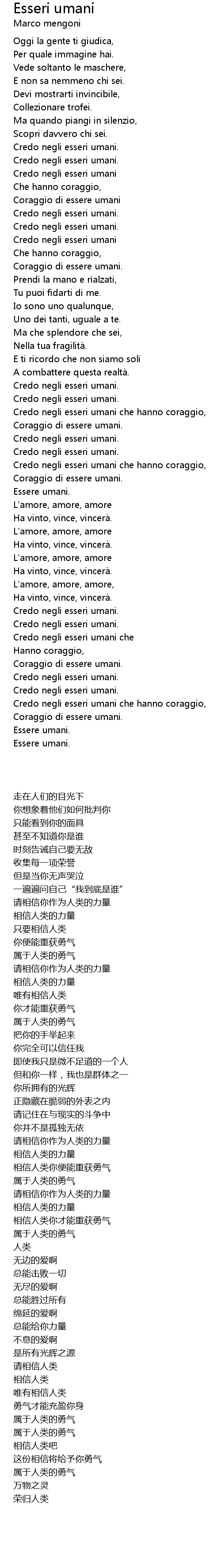 | 歌曲 | Esseri umani |