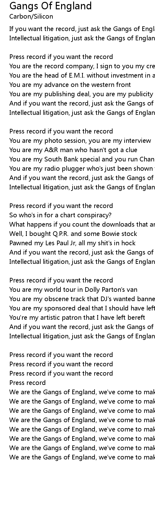 If you want the record, just ask the Gangs of England |