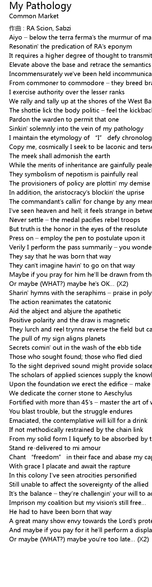 | 歌曲 | My Pathology |