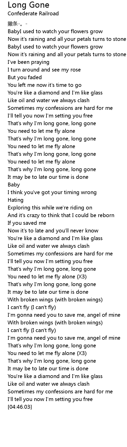 | [04:18.00] | That's why I'm long gone, long gone |
