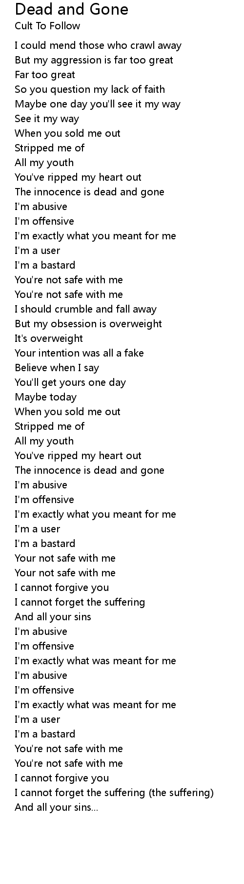 The innocence is dead and gone |