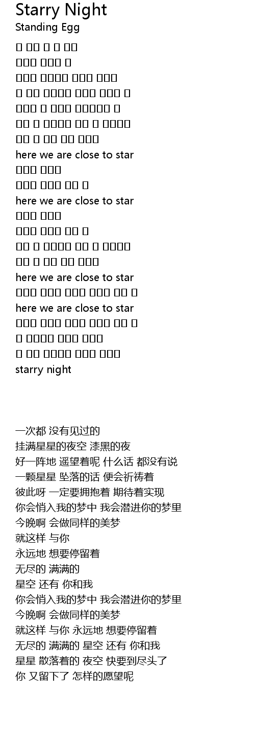| 歌曲 | Starry Night |