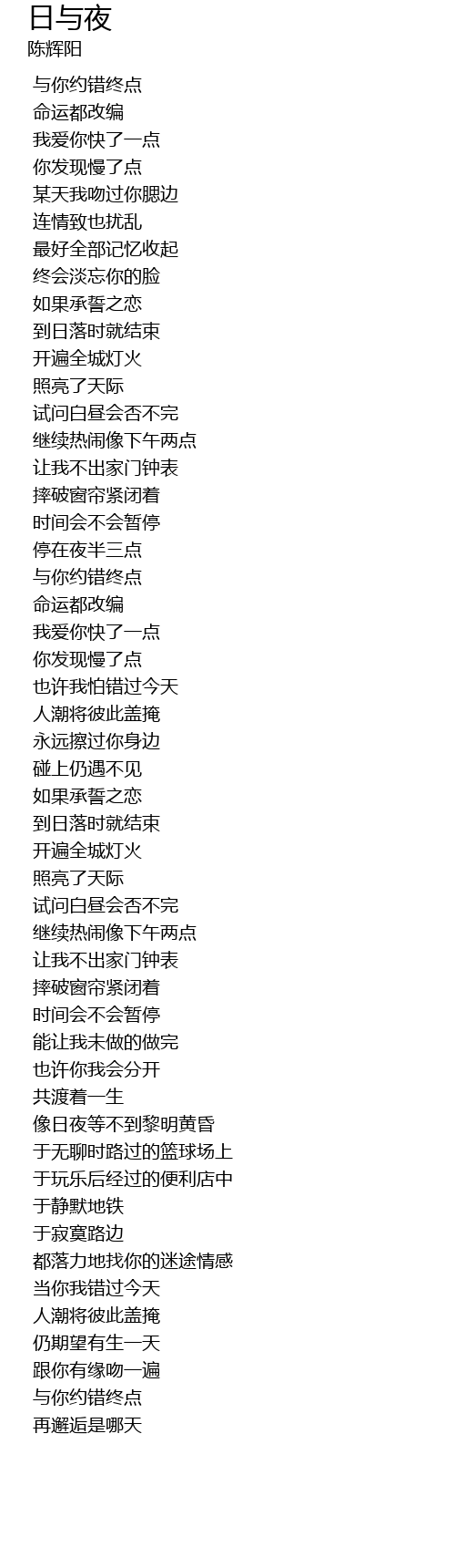 | 歌曲 | 日与夜 |