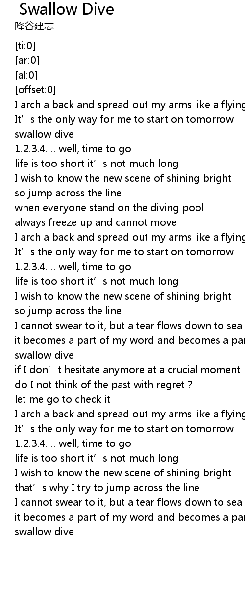| [00:24.12] | swallow dive |