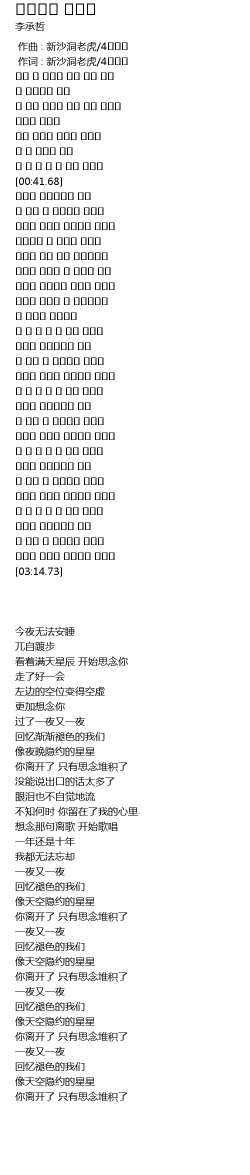 | [00:01.00] | 作词 : 新沙洞老虎/4번타자 |