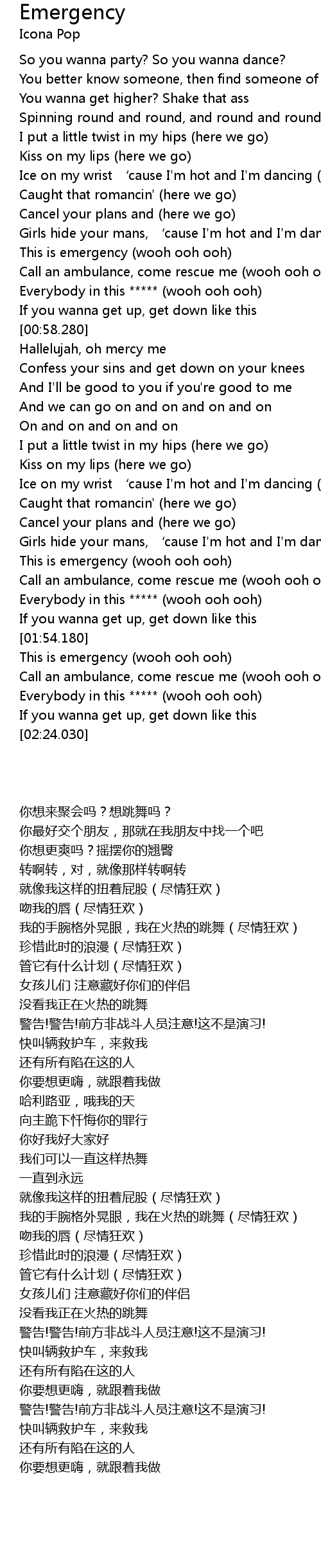 | [02:09.480] | This is emergency (wooh ooh ooh) |