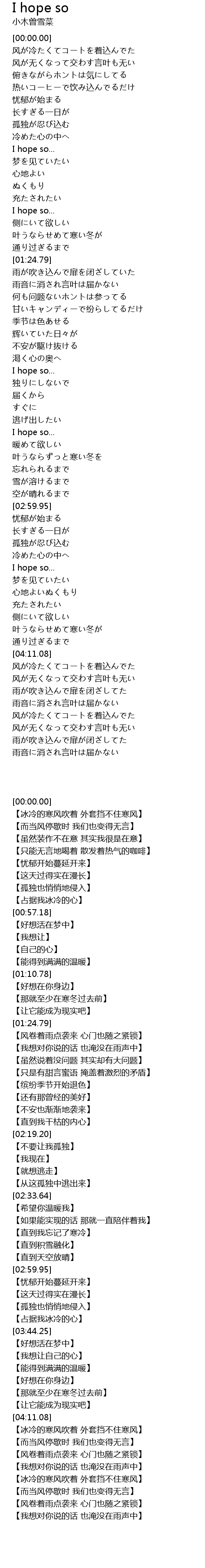 | [04:14.14] | 【冰冷的寒风吹着 外套挡不住寒风】 |