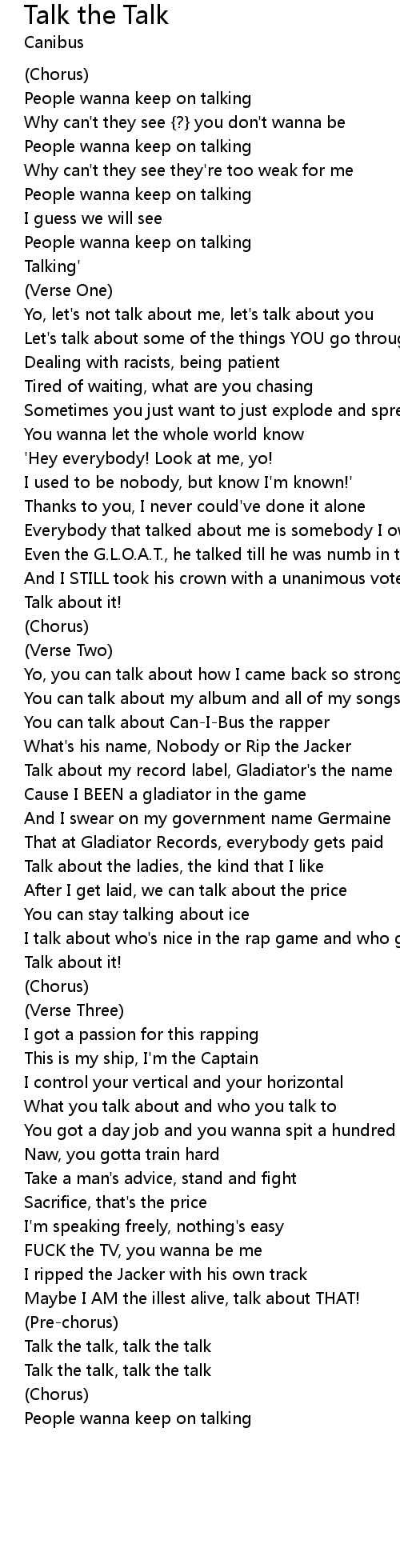 Talk the talk, talk the talk |