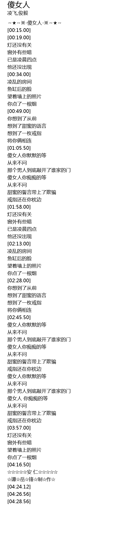 | [00:01.50] | ~★~※-傻女人-※~★~ |