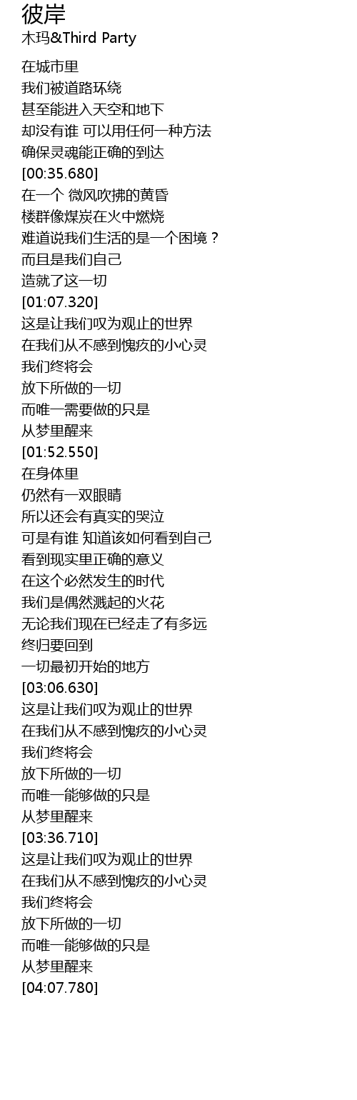 | [03:33.730] | cóng mèng lǐ xǐng lái |
