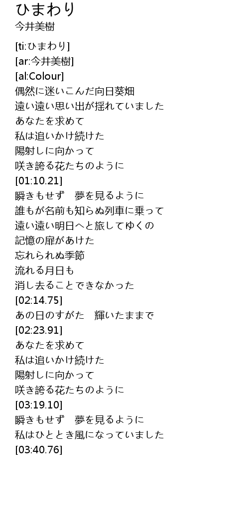 | [00:14.00] | 偶然に迷いこんだ向日葵畑 |