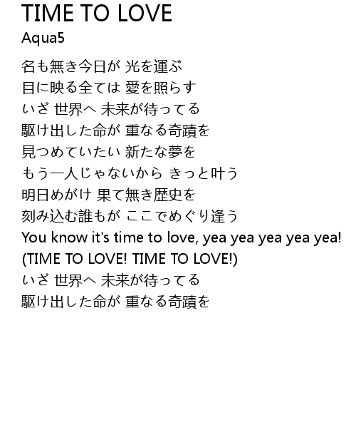 | (TIME TO LOVE! TIME TO LOVE!) | |