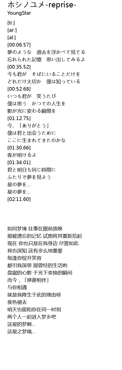 | [00:18.34] | 如同梦境 往事在眼前放映 |