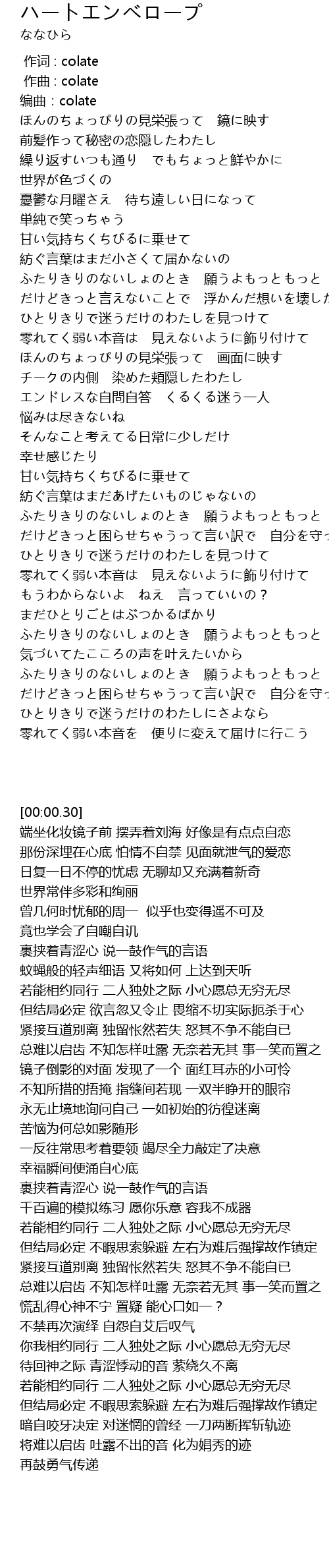| [00:00.30] | 编曲:colate |