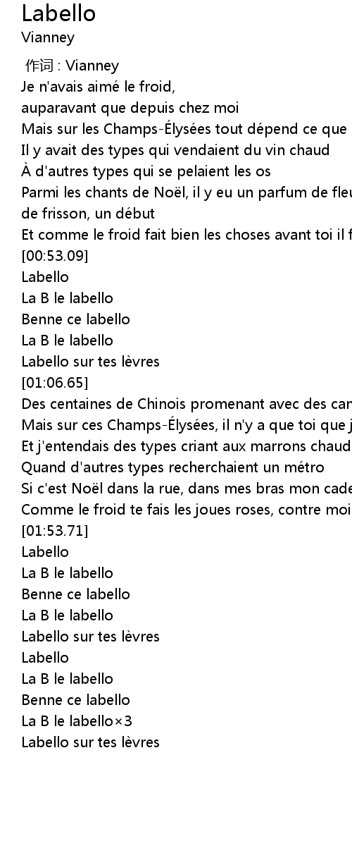 | [00:47.55] | Et comme le froid fait bien les choses avant toi il fallait que j'ose |